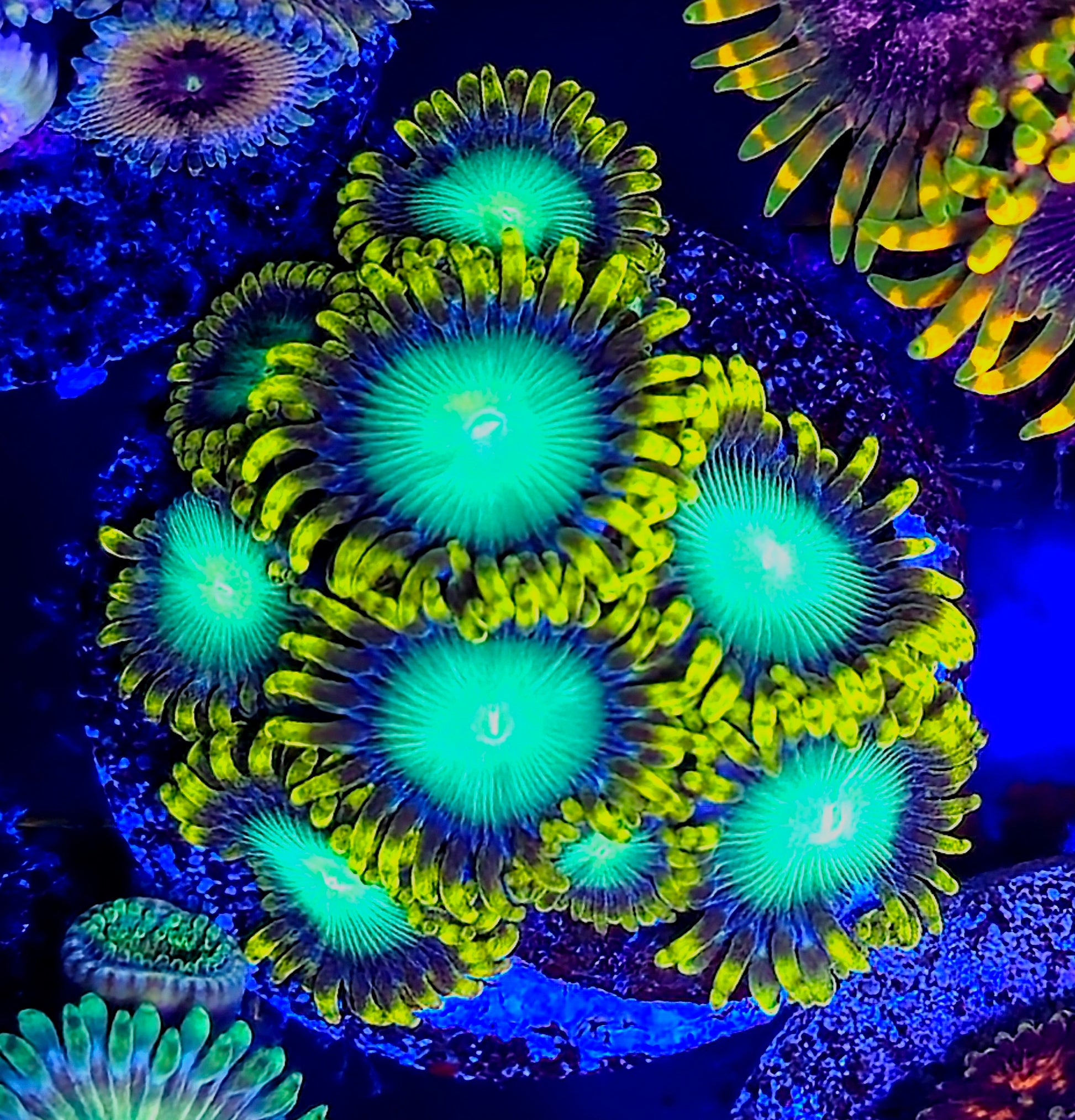 Zoanthid Gardens: Designate a specific area within the aquarium as a "zoanthid garden" by arranging multiple zoanthid colonies on a flat substrate or frag rack. This approach allows for easy maintenance and observation of the zoanthids while creating a visually appealing focal point in the tank.