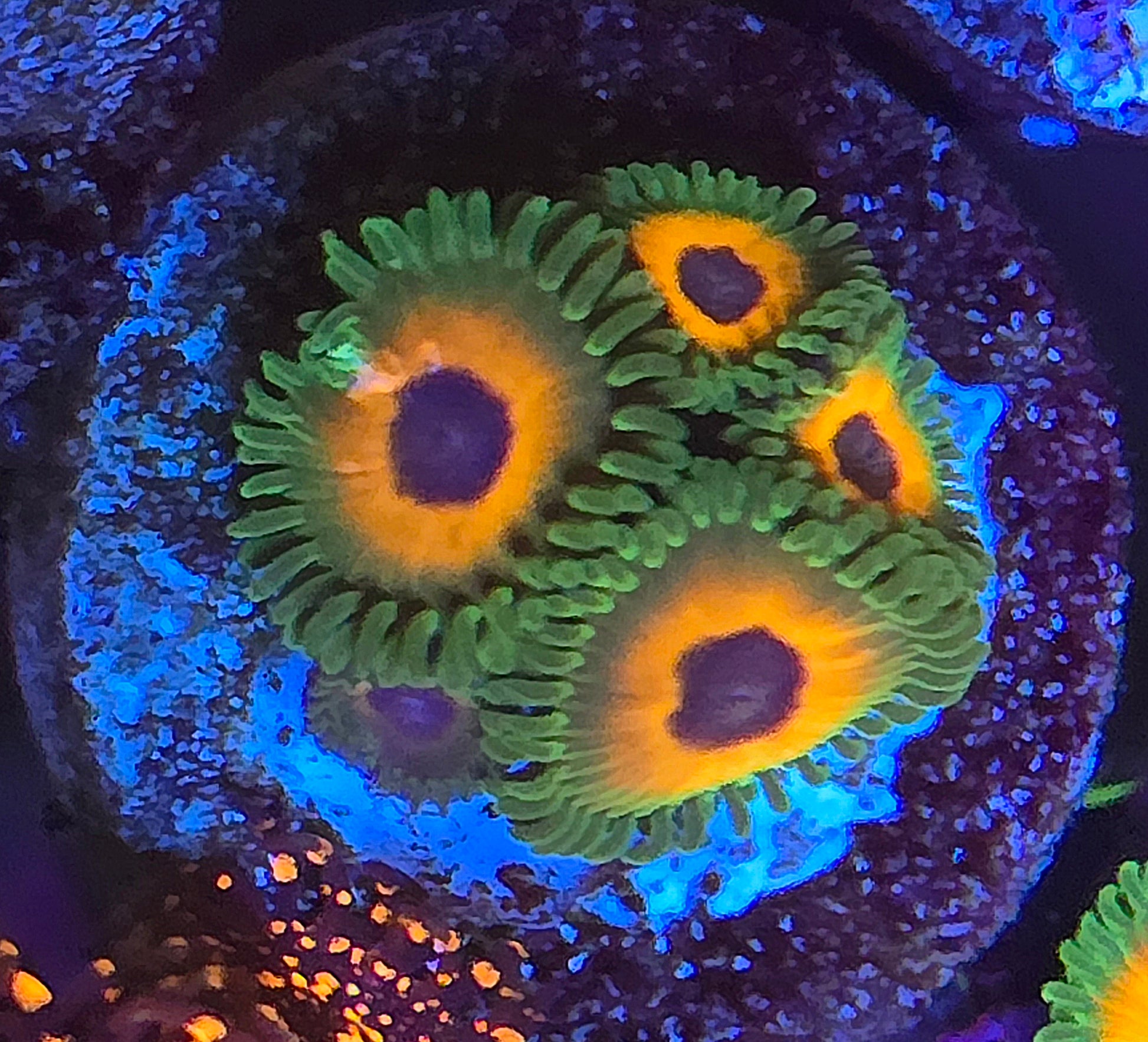 Zoanthid Gardens: Designate a specific area within the aquarium as a "zoanthid garden" by arranging multiple zoanthid colonies on a flat substrate or frag rack. This approach allows for easy maintenance and observation of the zoanthids while creating a visually appealing focal point in the tank.
